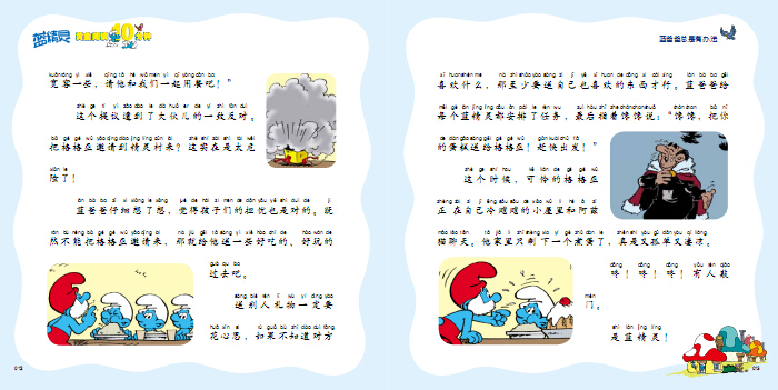 蓝精灵的故事,家长和孩子都是熟悉的。偶尔在关键的词或句子上停下来,让孩子自己说出关键的内容。可以指着书中的插图问问孩子:“你认为接下来会发生什么?”这不仅能增强孩子的参与感,还能锻炼孩子的思考能力和注意力,更有助于深度阅读习惯的培养。