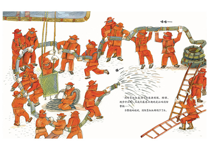 我的爸爸是一名消防员。他很爱我。他来幼儿园接我放学的时候,总是穿着橘红色的制服,见到同学们还会自豪地向他们敬一个长长的礼。 可是,那天我们幼儿园去爸爸所在的消防大队参观时,爸爸却没有出现,他去了哪里呢?