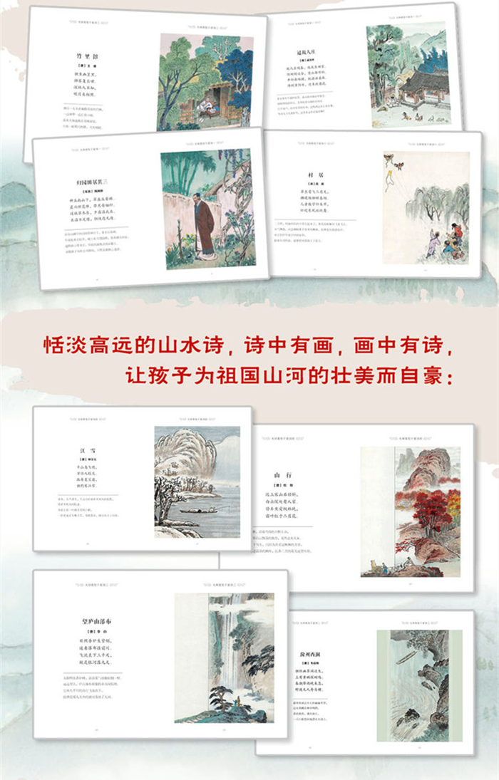 《大师美绘千家诗四》选取唐代的古诗代表作,如《钱塘湖春行》《竹枝词》《江雪》《菊花》《清明》等。