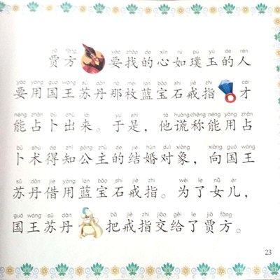 这是一本图画故事书,加注拼音。贫苦青年阿拉丁与茉莉公主一见钟情,因为一次神奇的经历,阿拉丁拥有了可以实现愿望的神灯,为了能和公主结婚,阿拉丁许愿变成了阿里王子,但他迟迟没有向公主说出实情,然而想要夺取王位的宰相贾方夺走了神灯,变成了新的国王。整个王国岌岌可危,为了夺回神灯、拯救王国和茉莉公主,勇敢机灵的阿拉丁挺身而出,成功地打败了贾方,赢得了爱情和穷小子真正的尊严。