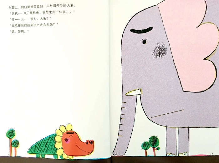 本书引进自日本,16开,简装,属于低幼类绘本图书,适合亲子阅读。该书以长得像向日葵的小鳄鱼为主角,进行拟人化,展现了发生在向日葵鳄鱼和大象、狮子爷爷、大猩猩、长颈鹿等森林动物之间的温情而略带幽默的故事,书中的趣味与感动让小读者产生强烈的共鸣。