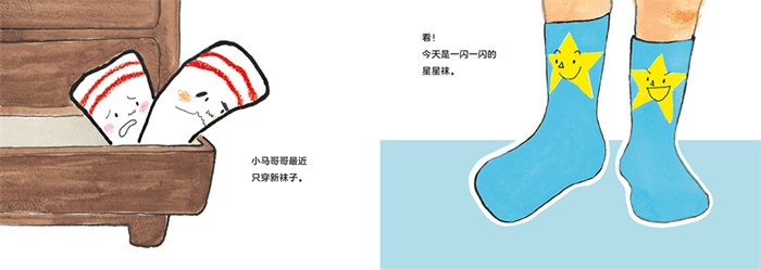 有时候,说教并不能帮助孩子养成良好的生活习惯,多次讲道理,孩子反而会产生厌烦情绪。这时,不如用一个幽默逗趣的故事来打开孩子的视野,帮助他们转化看待事物的视角,也许会有意想不到的收获。《穿我,穿我!》从袜子的视角出发,讲述了一对袜子因为想被主人穿上,进行各种尝试的故事。以袜子的可爱口吻和孩子对话,极易拉进与孩子的距离,帮助他们从小懂得珍惜身边事物,养成良好的生活习惯。