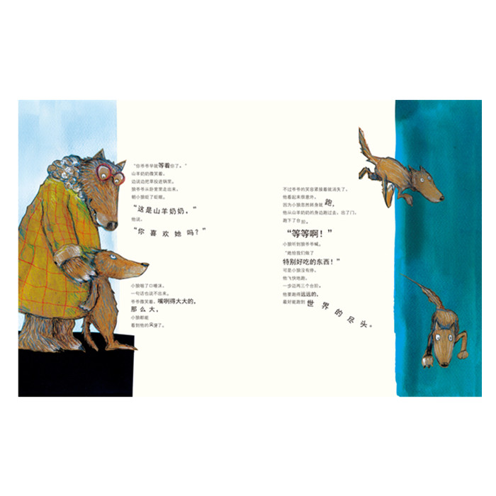 这本图画书讲了一个爱与幸福的奇妙故事。小狼和狼爷爷幸福地生活在一起,但有一天,家里来了一位羊奶奶——这是狼爷爷喜欢的人。小狼感到紧张和不安,觉得爷爷被山羊奶奶抢走了,内心受到了深深的伤害。美丽优雅的小羊帮助他了解了爱的感觉,化解了小狼心里的忧伤。故事最后,小狼、小羊、狼爷爷和杨奶奶幸福地生活在一起。浓浓的甜蜜,淡淡的哀伤,每一个成长的瞬间,都有着丰富的意味和幸福的内涵。敞开心灵,就可以接纳不同寻常的奇异世界。