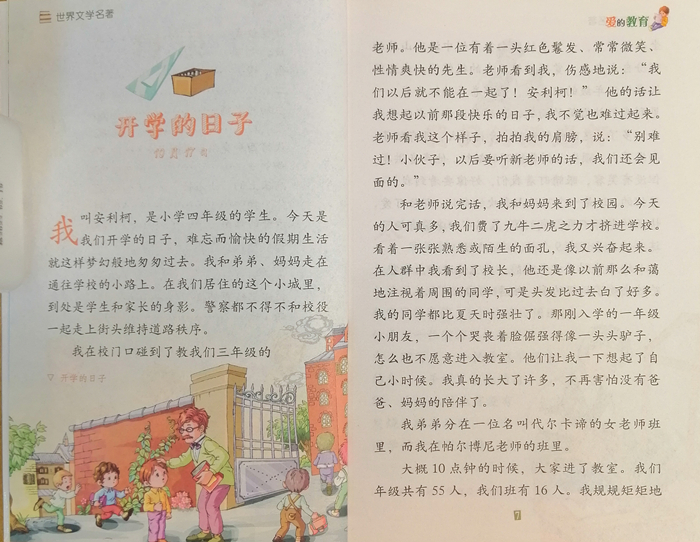 《爱的教育》是意大利著名儿童文学作家亚米歇斯的一部极富感染力的儿童小说。以一个意大利四年级的小学生的日记形式为主,记述了主人公在四年级这一学年里在校内外的所见、所闻和所感。其中还包含了父母为他写的许多具有启发意义的文章,以及老师在课堂上宣读的一个个感人的故事,抒发了人类*伟大的感情——爱。《爱的教育》*早发表于1886年,自此以后一直畅销不衰。现已被翻译成100多种文字出版,多次被改变为动画、电影和连环画,成为一部*富爱心及教育性的读物,是世界公认的文学名著。