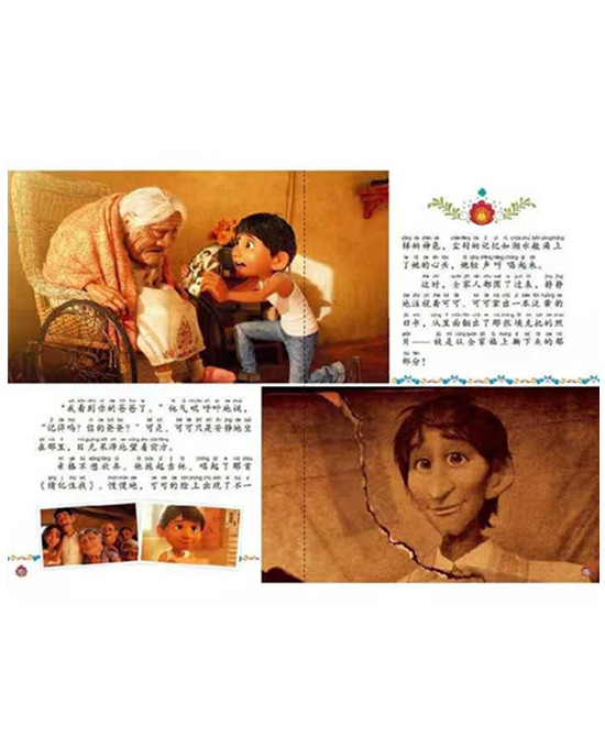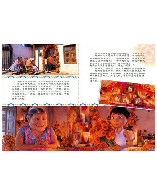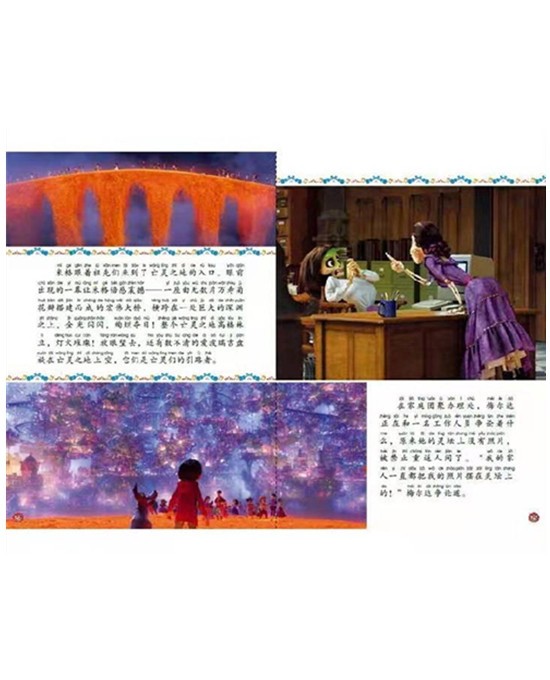 加注拼音,符合孩子们阅读能力增长的需求,帮助孩子实现自主阅读。剧照图作为最贴近大电影的图片风格,在迪士尼电影产品系列中,更能引起读者的共鸣和亲切感。