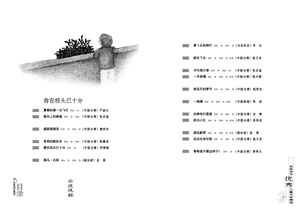 “世界华文优秀儿童文学精选”系列丛书内地、港台及海外优秀原创华文儿童文学作品的集体亮相。书中汇集众多蜚声海内外的知名华人儿童文学作家的经典作品,展现了当代华文儿童文学作品的丰硕及风格的丰富多彩。