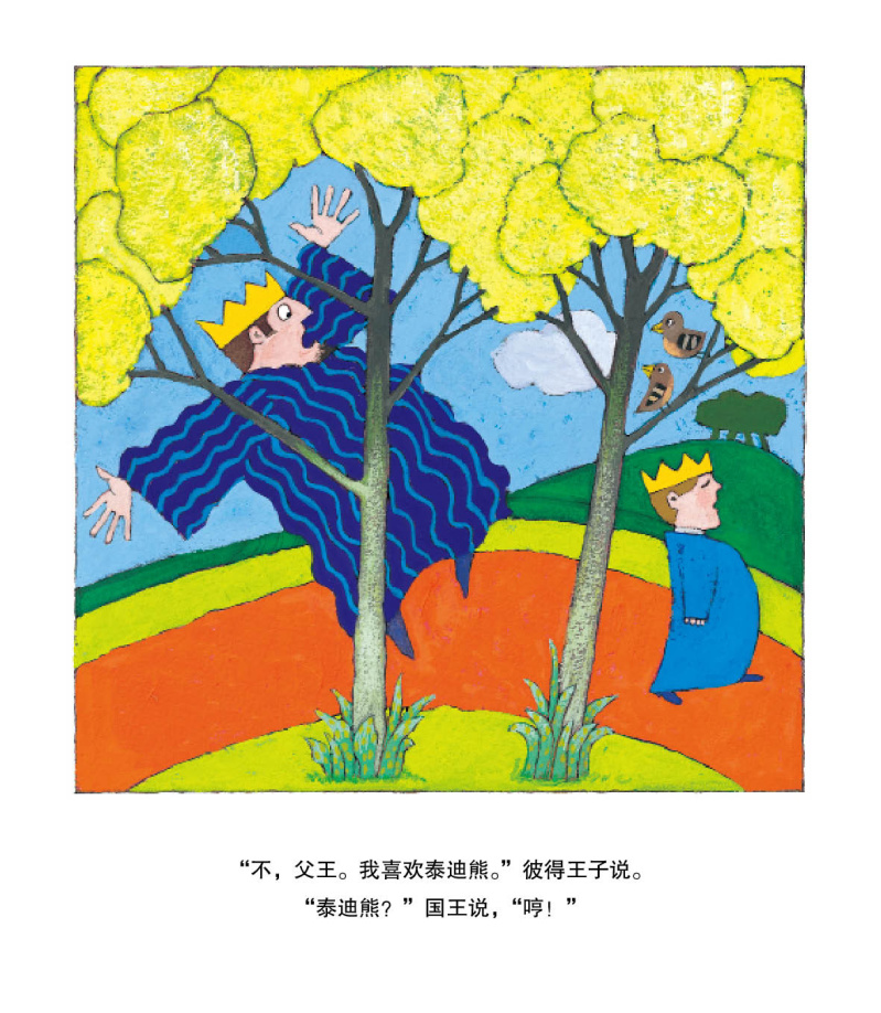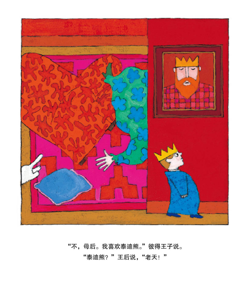 《我喜欢泰迪熊》:小王子要过生日了,他的生日愿望是得到一个可爱的泰迪熊,可是,国王和王后想给小王子更高贵的礼物,比如全新的宝座、镶钻的皇冠、坚硬的盔甲……可是,小王子只想要泰迪熊,这让望子成龙的国王和王后很郁闷。最后,国王和王后妥协了,送给他一个纯金的小熊。可是这只小熊又坚硬又冰冷,摸起来一点也不舒服。不过小王子还是用温暖和爱拥抱了它,小熊终于变得柔软起来,而小王子也找到了与家人相处最重要的秘诀。本书告诉我们,无论贫穷富有、高低贵贱,在孩子的心中,温暖和爱才能战胜一切。就算是高贵的王子,他也有最真实的渴望和需求。他的心愿就和所有的小男孩一样,虽然不起眼,但依旧需要得到尊重和认可。