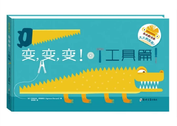“我找到一把钻洞的钻头,我把它变成一只贪吃虫子的小鸡!我发现一个切任何东西的磨光机,我把它变成一只红鼻子的刺猬!我拿起一个橘红色的独轮手推车,我把它变成一条可怕的蛇!我看见带电的钳子,我把它们变成一只逃跑的蝎子!”这是一本特别有创意的翻翻书。每一页打开后会看到一个孩子们熟悉的工具,比如钻头,磨光机,手推车等等,但是翻开钻头、磨光机、独轮车,会发现下面藏着一只小鸡,刺猬或是蛇,工具的一半和动物的一部分完美地镶嵌在一起。通过这种图像的联系和跳跃,教给孩子们去发现不同事物之间的相似性,激发孩子的想象力,让孩子们在享受动手探索的乐趣的同时,增强形象思维的训练。