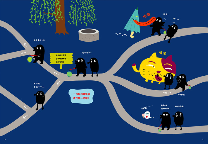 这是一套用手指跟着一古拉去冒险的逻辑游戏绘本,每本书3个故事,每个故事有20多种充满冒险的道路选择游戏,每个岔路口选择的组合都产生不一样的冒险体验。充满趣味的岔路口冒险游戏,鼓励孩子参与互动,在阅读中培养逻辑力,想象力和专注力。