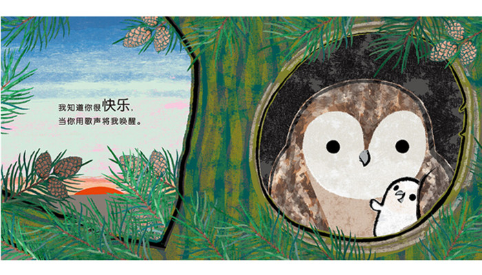 《快乐》选自暖房子亲子共读绘本《爱的表白书》。本书用可爱温馨、细腻舒畅的图画展现了猫头鹰妈妈和小猫头鹰的日常生活场景:我爱你为我带来的快乐。