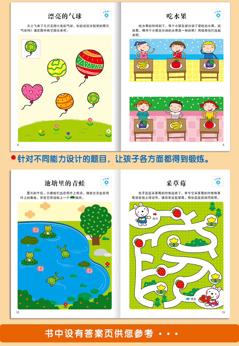 训练的内容包含了观察与记忆力训练、逻辑思维能力训练、空间知觉能力训练与想象和创造力训练。分年龄段、分能力的有针对性的训练,循序渐进、科学系统地帮助幼儿全面提升思维能力。思维是智力的核心。《全脑思维升级训练》分年龄段,分能力有针对性地训练幼儿的思维能力,循序渐进、科学系统地帮助幼儿全面提升思维能力。有趣的游戏形式贯穿始终,寓教于乐,让孩子在快乐中学习,在学习中成长。书中附有能带给孩子信心的激励贴纸,让孩子充分体会完成游戏的成就感,增强孩子学习的主动性。