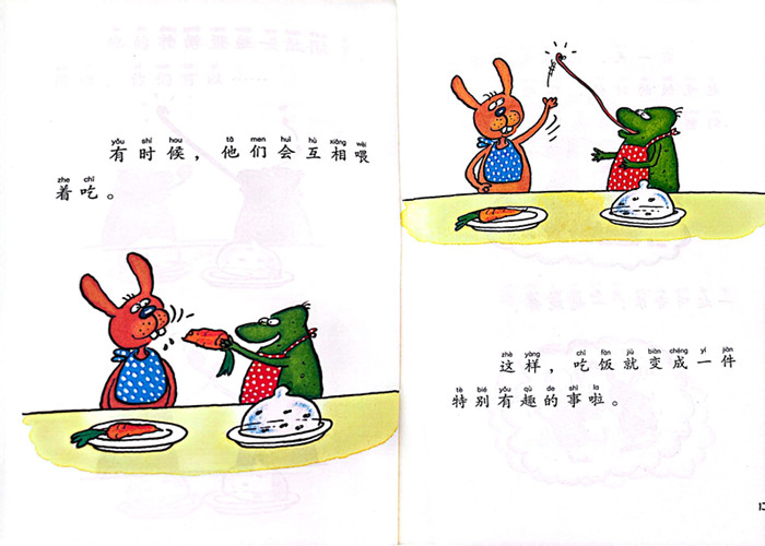 蹦蹦是一只喜欢吃胡萝卜的兔子,跳跳是一只喜欢吃苍蝇的青蛙。他们每天在一起玩儿,是最要好的朋友。蹦蹦想请跳跳吃胡萝卜,跳跳想请蹦蹦吃苍蝇,可是谁都吃不下去。如果不能分享好吃的食物,还能当优选的朋友吗?