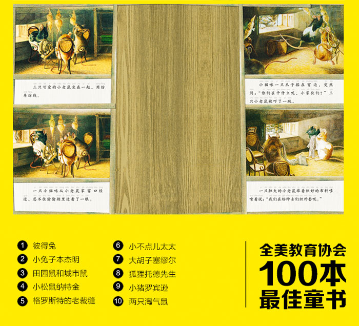 包括《小兔彼得的故事》《小松鼠纳特金的故事》《格罗斯特的裁缝》等二十三篇童话和《阿利·达普利的童谣》《塞茜莉·琶丝莉的童谣》《三只小老鼠》《小兔子的圣诞晚会》四篇童谣,其中童话《狡猾的老猫》《狐狸和鹳乌》和童谣《三只小老鼠》《小兔子的圣诞晚会》是作者生前未出版的作品。二十七篇美丽的童话(童谣)各具异趣,字里行间洋溢着友情和爱心的温馨,七百多幅精美的图画逐页插配,相成趣,给人以极大的艺术享受。