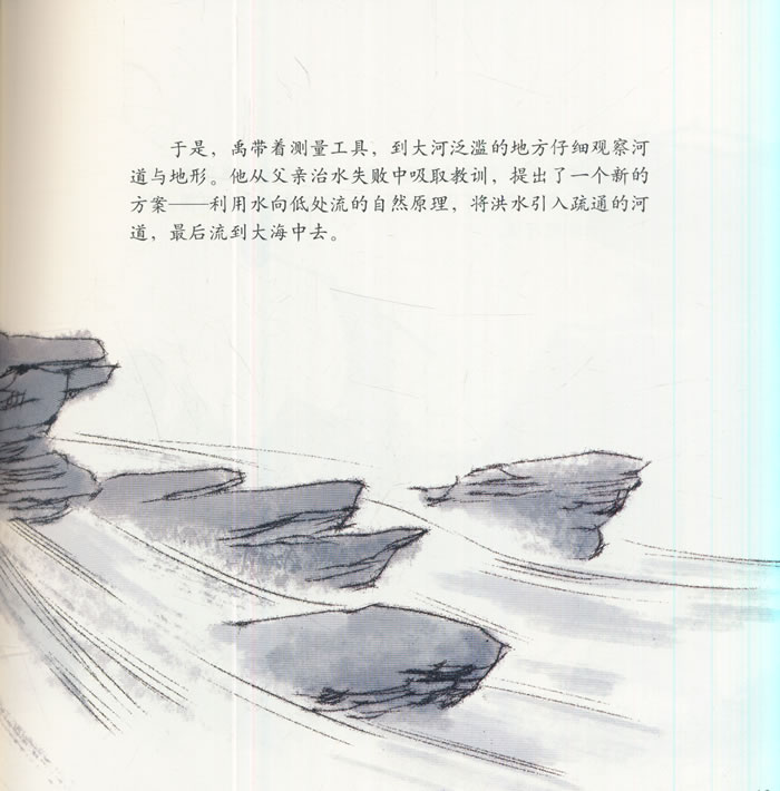 三皇五帝时期,黄河泛滥,淹没了村庄,给人民带来了灾难。鲧、禹父子二人受命于尧、舜二帝,任崇伯和夏伯,负责治洪水。面对滔滔洪水,大禹他吸取了父亲鲧采用堵截方法治水的教训,发明了一种疏导治水的新方法,其要点就是疏通水道,使得水能够顺利地东流入海。大禹每发现一个地方需要治理,就到各个部落去发动群众来施工,每当水利工程开始的时候,他都和人民在一起劳动,吃在工地,睡在工地,挖山掘石,披星戴月地干。大禹治水三过家门而不入,有一次他治水路过自己的家,听到小孩的哭声,那是他的妻子涂山氏刚给他生了一个儿子,他多么想回去亲眼看一看自己的妻子和孩子,但是他一想到治水任务艰巨,只得向家中那茅屋行了一个大礼,眼里噙着泪水,骑马飞奔而走了。大禹治水13年,率领民众,与自然灾害中的洪水斗争,耗尽心血与体力,终于完成了治水的大业。