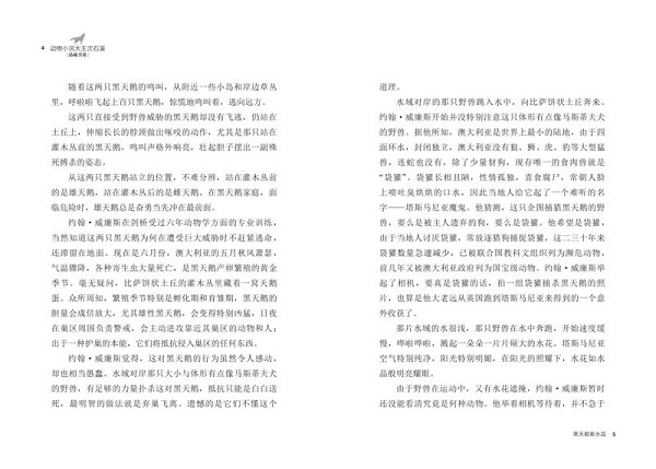 这是一部长篇小说,共十四章,讲述了澳洲特有物种黑天鹅的故事。一卷尘封已久的羊皮日记,一场人与天鹅的恩怨故事,一段代代相传的血海深仇,一份生死相依的珍贵感情,作家通过“紫水晶”这样一个三百年前和三百年后重叠的黑天鹅形象,试图告诉读者,人类因贪婪而变得残暴,因无知而变得偏执,曾经和正在对动物犯下累累罪行。并且,以此呼唤人类改变陈腐的观念,善待动物,停止杀戮,珍惜地球生命。与以往品藏书系不同的是,《黑天鹅紫水晶》以彩色插图本呈现,内文配备了精美的彩色插图。
