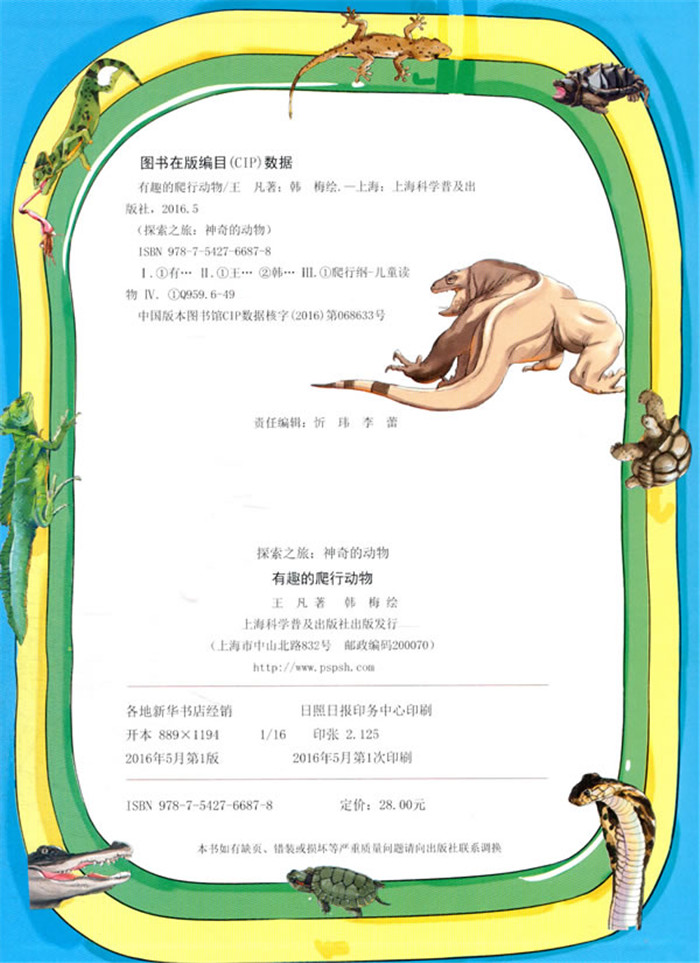 神奇的动物王国,蜂飞蝶舞,兽走鱼游、虫鸣鸟唱,充满了勃勃生机和迷人的魅力,*充满了诱人的神奇和闪光的智慧……由王凡所*、韩梅编绘的这个绘本《有趣的爬行动物(精)/探索之旅》以**人称自我介绍的形式,用儿童的语言介绍了8种*具特色和个性的爬行动物,以孩子的视觉,全方位地呈现各种爬行动物的可爱和可怕,让孩子们了解各种不同的爬行动物的生活习性,丰富孩子们的知识,开阔他们的眼界。