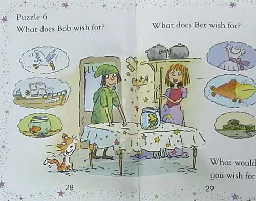 《许愿魔法鱼》:这个故事是关于大海,Bob,Bet以及一条带有魔法的小鱼的故事。本书为初级儿童读物中的Level1(共12本),全文短句和简单词汇,适合小学低年级尝试独立阅读。也适合幼儿亲子共读。书后附有的趣味问答有排序,找不同等,非常适合小朋友,末页为答案。