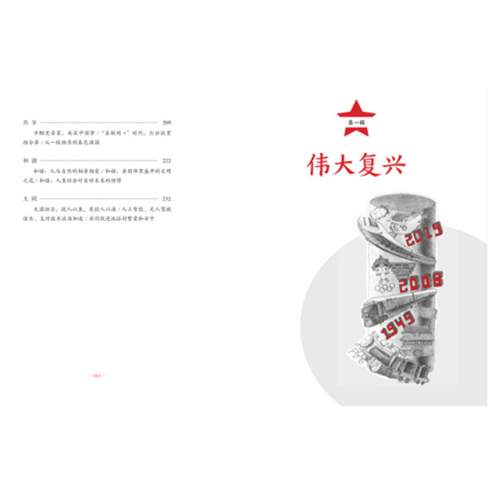 作为一本爱国主义主题教育读物,本书特色鲜明,它以主题词形式结构文本,从让当下青少年拥抱理想和信念,自尊自信,培养爱国主义精神角度出发,本书精选的主题词包括:梦想、尊严、开放、力量、追寻、创造、速度、和谐、共享、生态、希望等,内涵十分丰富,延展性强。以饱含深情、具有文学性的纪实笔法,从个体的生命体验出发,通过小切入点展现大主题,以千万个小“我”的故事来汇聚呈现祖国的发展,使得全书内容更具有贴近性和时代感。在对浩繁内容的取舍和比例把握上,赋予内容纵深感同时,突出其间主要人物,由他们串联起一幅幅真实可触的历史画面,展现民族精魂。书中所有插图均由孩子创作,让孩子们画出心中的祖国,童趣盎然。