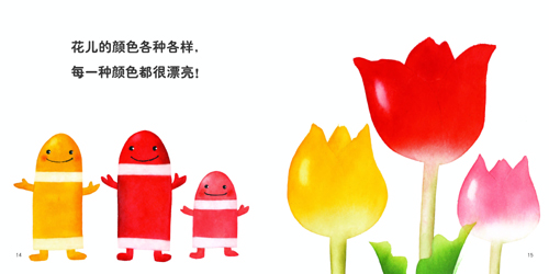苹果是红色的;天空是蓝色的;云是白色的……红色、绿色、蓝色……各种颜色手拉手,就是彩虹的颜色。每种颜色都很漂亮!