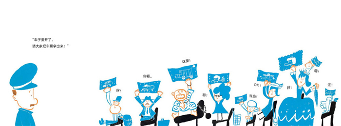 才刚读完这本书的一部分内容,我就开始问自己:“如果是我呢,我会去追吗?”“应该不会吧!”我可能还是会循规蹈矩地将乘客送到各自的目的地,再去找车票。但是这位司机固执得很,他一定要载着乘客一起追车票。如果你再仔细看看乘客的车票,你会发现他们每个人的票都不一样。这就是“不明说”的艺术,作者明明没有用文字表达,却在图画里蕴藏了很多细节等待读者发现,就像在寻宝一样。很多人喜欢什么事都说得清清楚楚,也有很多人习惯不必说得那么清楚。这其中各有利弊。说得清楚的没有转圜余地,但很精确;说得不清楚让读者充满想象,却又不明确,倘若它遇到不同的读者,就会有不同的解读。