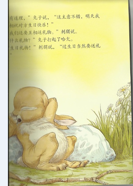 《兔子和刺猬的故事:生日礼物》的主要内容是:兔子和刺猬都不知道自己的生日是哪一天,可万一明天就是他们的生日呢,所以他们决定明天就过生日。可是,他们应该互赠什么生日礼物呢?最后,他们俩都为对方找到了最好的礼物——不过这两个礼物所发挥的作用跟他们一开始想的可不一样。