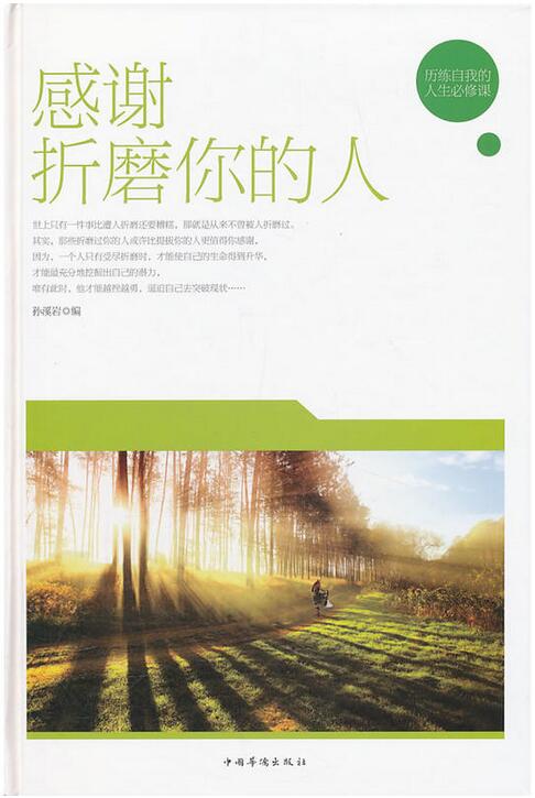 孙溪岩编著的《感谢折磨你的人》以生动时事例 从心态、事业、生活、工作、爱情、亲情、交际、财 富、竞争等方面详细阐述了“感谢折磨你的人”这一 人生处世大智慧,教会读者面对折磨自己的人时,不 是在愤恨、抱怨中自暴自弃,更不是以牙还牙地报复 ,而是把折磨转化为激发自己前进的动力,踏踏实实 地做事,在逆境中积蓄力量,积极进取。当你面临挑 战、遭受挫折和感到无助之时,《感谢折磨你的人》 会给你以力量;当你迷茫、痛苦和失落之时,本书会 给你以慰藉。