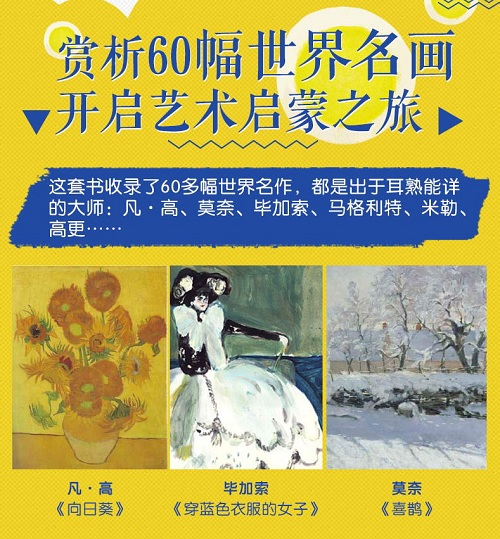 1.300多件名作 近200个互动活动 丰富的生活实例 具体的方法论,手把手教孩子发现身边的美、学会创造美; 2.配3本原作《导图手册》,深度解读艺术,家长也能在家轻松陪孩子欣赏名作; 3.配18节音频课,拓宽知识广度,构建更立体的艺术世界; 4.基础课、进阶课、提高课,循序渐进,逐步提升艺术学习能力、审美水平; 5.采用无线胶装,方便平摊、进行撕剪涂画等活动。全家总动员,在有趣的艺术创作活动中升华亲子关系。 6.从封面到内页,无一不精心设计,仅仅观赏书籍本身,即是美的享受!
