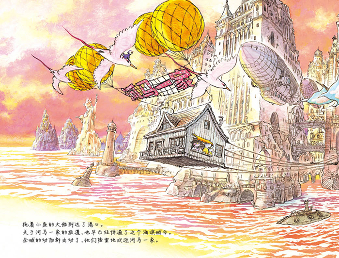 这是一个抚慰人心的家庭冒险故事,向读者传达亲情、友爱、无私和智慧的可贵。即使房子被暴风吹走,即使艰难地在海上漂流,河马一家依然相依相伴,共同克服重重困难,让读者真切感受到亲情的温暖:只要一家人在一起,就一定能看到希望和曙光。同时,本书画风细腻,细节设计巧妙,每一页都能看到一只小企鹅的身影,这也为本书增加了“找找书”功能,增添了几分乐趣。