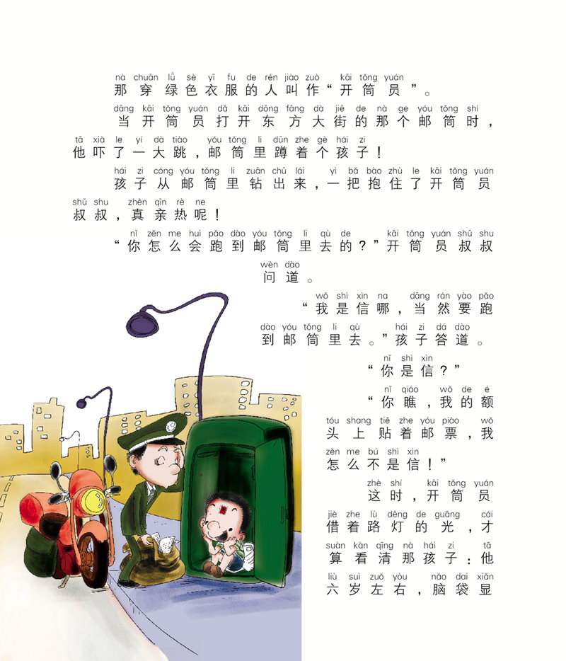 有个叫小溜溜的小男孩特别羡慕爸爸可以坐着飞机、火车、轮船去**各地出差。有一天,小溜溜在额头上贴了一张邮票,邮筒突然张大了嘴巴把他吞了进去。小溜溜通过邮票去了好多古怪的城市:随便市、巧克力市、玩儿市、啰唆市、急急市、悠悠市……听名字就够有趣的吧,里面发生的故事更是让你意想不到。