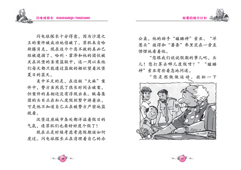 闪电球探长终于要休息一下了,可他告诉助手们这次的旅行要保密!原来他是被邀请去破获一起贩毒案件的!糟糕!闪电球探长竟然中圈套了!他是在谁的帮助下逃出陷阱的呢?他能解读出奇怪符号所隐藏的密语吗?在本册书中,闪电球探长将要和小侦探们一起解开这重重谜团,将犯罪分子绳之以法。