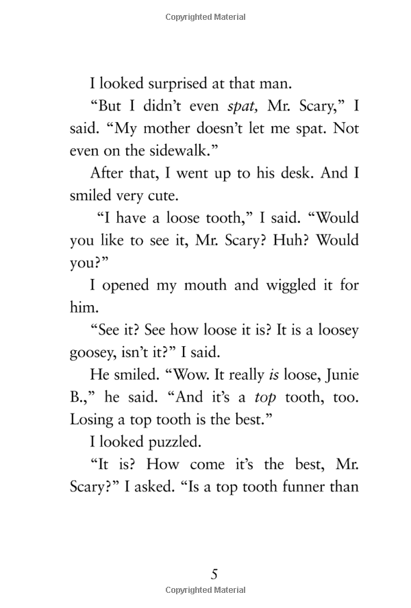 Meet the World’s Funniest First Grader—Junie B. Jones! One of Junie B.’s top front teeth is loose! Only Junie B. is not that thrilled about this development. Because what if she looks like toothless Uncle Lou? And even worse . . . what’s all this tooth fairy business? Like, who is this woman, really? And what does she do with all those used teeth? So many questions, so little time.
