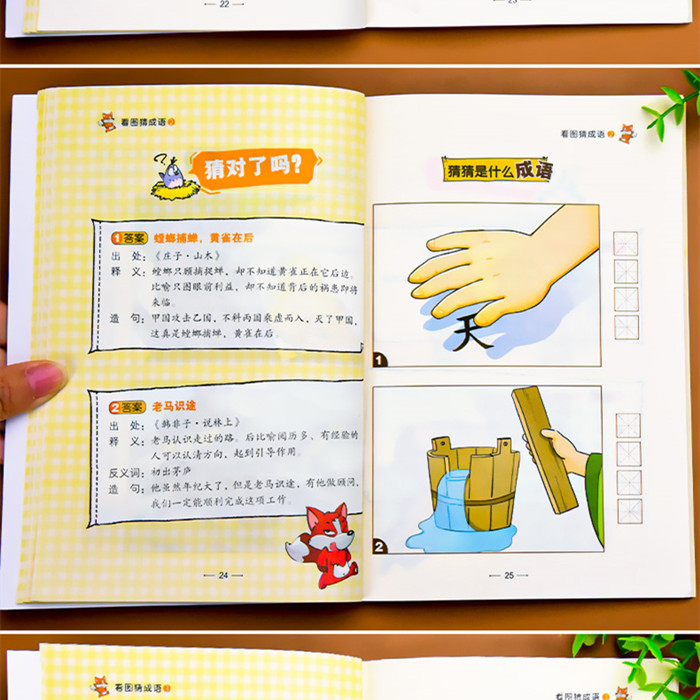 内容简介 《看图猜成语》是一套以小学生为阅读对象的知识读本,共四册。本套书让小学生先看漫画猜成语,再给出正确答案,并附有释义、出处、近义词、反义词、造句等内容,还奉送有趣的成语小故事和小游戏,小学生可以边欣赏漫画边学习成语,边阅读故事,让小学生在游戏中感受中华传统文化的博大精深,增加成语词汇量,提高联想能力、阅读能力和写作能力。