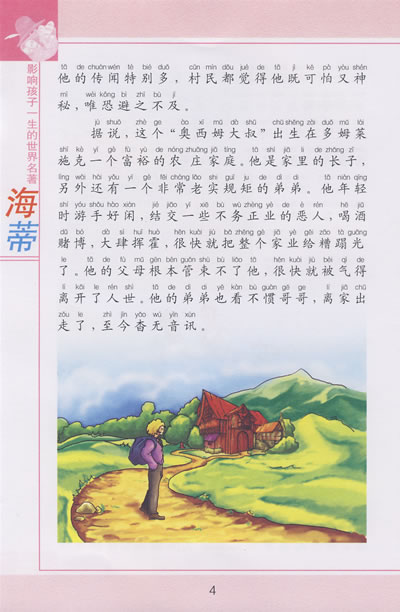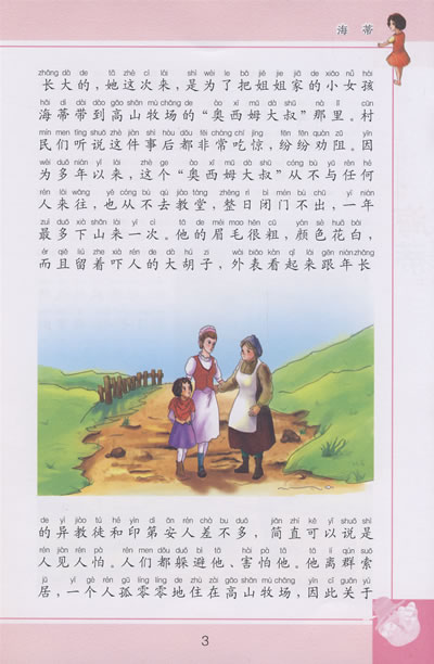 瑞士著名作家乔娜·施皮里的代表作《海蒂》是一部世界性的文学经典名著,深受几代人的欢迎。善良淳朴的小女孩海蒂,被姨妈送到高山牧场上,与性情古怪的爷爷一同生活。牧场的阳光、羊群、草地……简直太美了,海蒂爱上了这里。可是,不久后,海蒂又被姨妈送到法兰克福,给一位富家残疾女孩做伴。城市里缺乏自由,规矩繁多,海蒂越来越不开心。最后,海蒂终于回到了日思夜想的高山牧场,而且创造了一个奇迹…… 瑞士著名作家乔娜·施皮里的代表作《海蒂》是一部世界性的文学经典名著,深受几代人的欢迎。善良淳朴的小女孩海蒂,被姨妈送到高山牧场上,与性情古怪的爷爷一同生活。牧场的阳光、羊群、草地……简直太美了,海蒂爱上了这里。可是,不久后,海蒂又被姨妈送到法兰克福,给一位富家残疾女孩做伴。城市里缺乏自由,规矩繁多,海蒂越来越不开心。最后,海蒂终于回到了日思夜想的高山牧场,而且创造了一个奇迹……