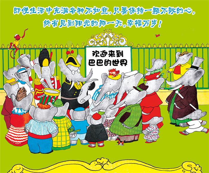 《大象巴巴的故事全集》风靡世界80余载,历久弥新。作者让?德?布吕诺夫用鲜艳、丰富、充满幽默感的画面和富有想象力的语言,为孩子们创造了一个天马行空的世界。这个不同寻常的故事,把人类文明带入了整个大象王国。蕴含了无限的爱和无尽感人的乐观、积极向上的精神。巴巴的故事还被制作成了78集卡通片,以30种语言在全球150多个国家播出。如今,睿智、沉稳、机警、和蔼、富于冒险精神,与人为善的大象巴巴已经成了一个全球性的文化形象,巴巴迷遍布全球数代人。