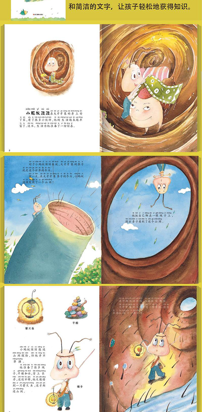 本书是一本精装绘本,主要讲述了小蚂蚁在大象鼻子里面找到了一本用叶子纤维做成的字典。小蚂蚁发现了文字的好处,它能把很多东西记录保留下来。绘本把故事与精美图片相结合,把富有童趣的文字转变成一次美妙的读图和历险体验,激发孩子们的想象力,去发现更为广袤的情感沃土。本书是作者以一位新晋爸爸的身份送给孩子的礼物,不空讲大道理,而是把自己对人生和世界的感悟藏进故事里,引导孩子构建美好而丰富的内心世界。