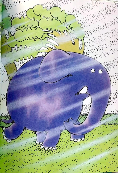 今天刮大风。小象很开心。