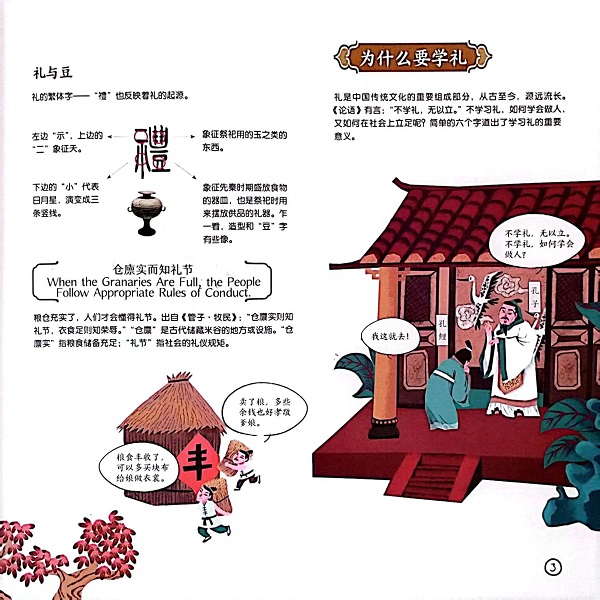 《“看不懂”的中国词:德行礼仪篇》集合了“礼”“仓廪实而知礼仪”“和为贵”“节气”等二十条利于孩子理解的礼仪相关术语,以中国人的“一天”“ 一年”“ 一生”为线索,讲述中国人“一天”中的日常生活礼仪、“一年”中的节日风俗礼仪、“一生”中的重要生命礼仪,通过介绍中国的传统礼仪规范和德行小故事,令孩子们更有情景感的体悟蕴含在礼仪背后的“中国智慧”。