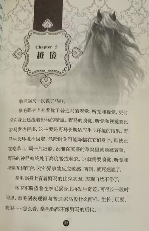 这是一部关于一匹马从马驹成长为马王艰难历程的小说。拳毛騧是蒙古野马与胡尔勒家马爱情的结合。拳毛騧出生的第二天,母马就死了,它靠着耍小聪明与机智,尝尽了马群所有母马的奶。它讲究公平,不管是温和老实的母马,还是心高气盛的母马,它只吃一次。三个月没到,它就断奶了,马群里还从来没有出现过生命如此顽强的马驹。小小的拳毛騧身上表现出罕见的奇迹,洪水来临之前,及时向马倌发出危险信号;狼群围攻马群,它强行头马带领马群冲出包围圈;阻挡马群越过边境线。就在马倌暗暗为拳毛騧高兴时,它又变得不可理喻,成了害群之马,为了驯化好拳毛騧,三个马倌想尽了办法,结果一一失败。马倌林卫东尝试着用另一种方式驯化拳毛騧,收到出乎意料的效果,拳毛騧的表现与原来大相径庭,救下溺水的什伐赤,从老狼口下救出马驹。就在林卫东进一步驯化拳毛騧时,突如其来的一场暴风雪不仅改变了马群的处境,也改变了拳毛騧的命运,在环境极度恶劣的情况之下,拳毛騧不知不觉走上了拯救马群之路,它率领着马群逆风而行,寻找食物、驻地,凭借着智慧、勇敢与狼群周旋,最终打败狼群。又帮助马倌制服盗马贼,让盗马贼充当马群的向导,最终马群回到驻地。