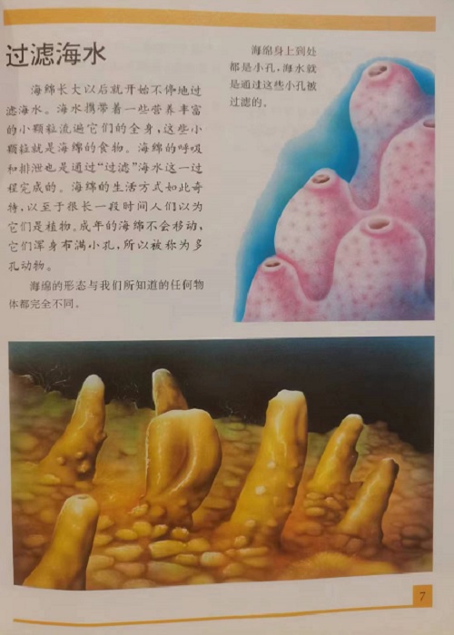 动物世界的奥秘 海绵 海洋的过滤器 《动物世界的奥秘》由35集组成,叙述方法新颖、独特,为孩子们 展示了一个丰富多采的世界。孩子们可以在娱乐之中,探索动物世界 最诱人的奥秘:熊是怎样冬眠的?蝙蝠的雷达是怎样工作的?鸟是怎样 飞行的 这本由教育学家和动物学家共同为孩子们编写的《动物世界的奥 秘》,是一部具有很高欣赏价值的教科书,寓教于乐,孩子们可以从中 学到知识,得到乐趣。 海绵 海绵是一种能够过滤海水的原始动物, 它们一生都附着在海底的物体上。我们将向 你解释它们的所有特点、分类及它们的食 物。你们一定会对这 些奇妙的事情感到惊 讶,比如说,断了的海 绵能重新生成新海绵 吗?还有,我们常见的“沐浴海绵” 实际上只是海绵的骨骼。