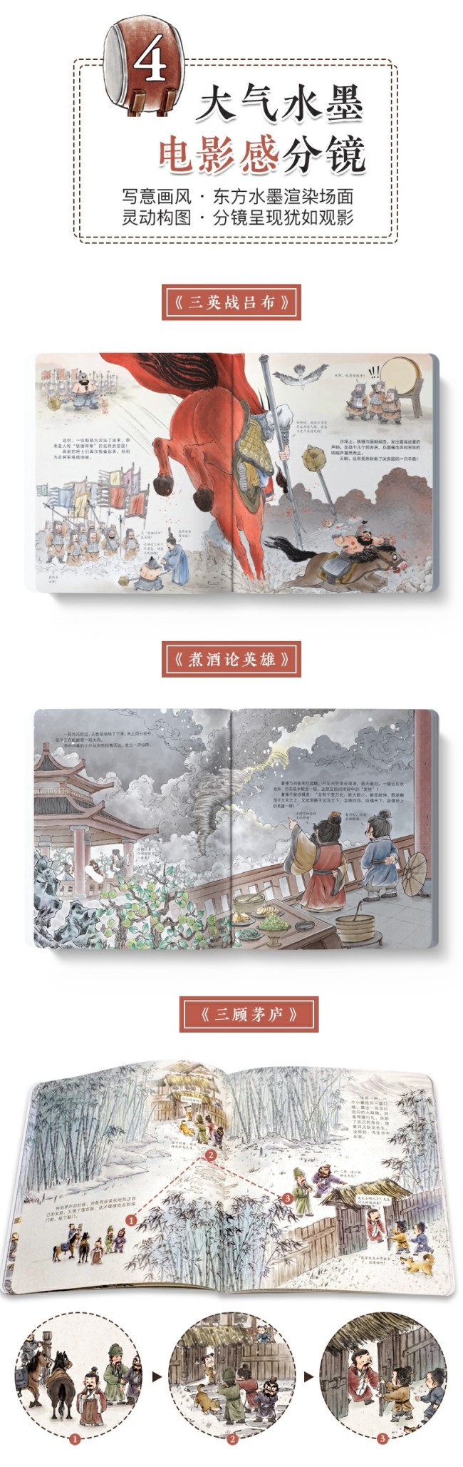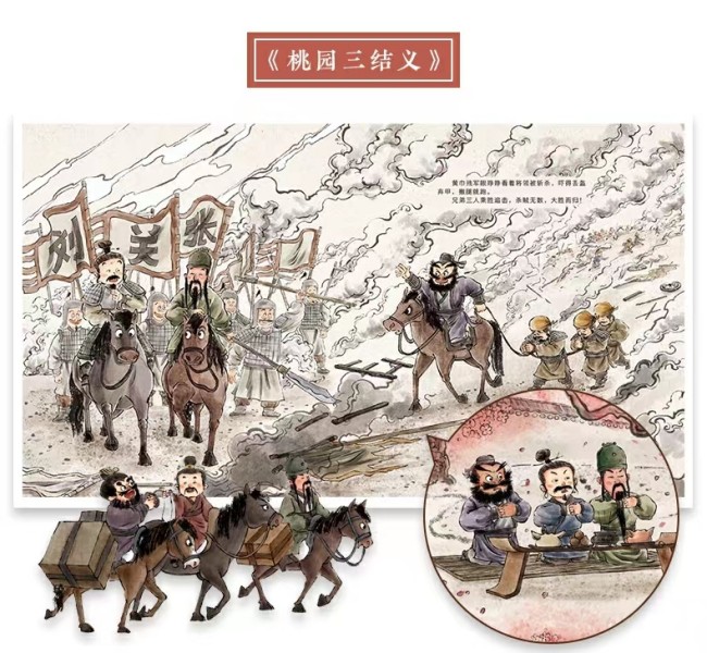话说天下大势,分久必合,合久必分。统治中国四百多年的大汉王朝,进入了分裂动荡的新时期。狼烟纷乱,群雄并起。乱世中,桃园里,刘备、张飞、关羽结为兄弟,再加上聪明机智的诸葛亮,战曹操、气周瑜、烧赤壁......英雄的故事,即将上演。 东汉末年,天下大乱。这时,一位名叫刘备的有志青年立志拯救百姓,报效国家,恰好遇上有相同志向的张飞和关羽。三人在桃源里结拜为兄弟,约定从此不离不弃,有福同享,有难同当!紧接着,他们招兵买马,准备率领五百壮士迎战五万人马的黄巾军。你猜,这场“以一敌百”的战斗他们能打赢吗?