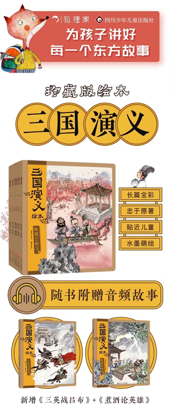 话说天下大势,分久必合,合久必分。统治中国四百多年的大汉王朝,进入了分裂动荡的新时期。狼烟纷乱,群雄并起。乱世中,桃园里,刘备、张飞、关羽结为兄弟,再加上聪明机智的诸葛亮,战曹操、气周瑜、烧赤壁......英雄的故事,即将上演。 刘备势力日益壮大,这时,他的军师徐庶却被曹操用记骗走了!好在徐庶临走前给刘备推荐了意为隐世奇才诸葛亮。刘备赶紧和关羽、张飞带着礼物前去拜访,然而诸葛亮并不在家,他们只能失望而回。不久后,三人冒着风雪再次拜访,不料诸葛亮又外出闲游去了。转眼春暖花开,他们第三次来到茅庐前......你猜,诸葛亮这次在家吗?他会答应为刘备出谋划策、平定天下吗?