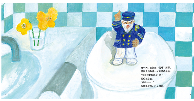 “我”从惧怕厕所船长,到和他成为好朋友,展现了孩子规则意识的形成过程。立规矩要循序渐进,从被动到主动,先由成人管理和约束,最终达到孩子自我管理并形成习惯。孩子犯错被发现时的紧张、害怕、怀疑,受到惩罚时的沮丧、狼狈、胆战心惊,自觉遵守规则后的淡定、从容、愉悦,都通过“我”的语言、动作与表情传达得淋漓尽致。