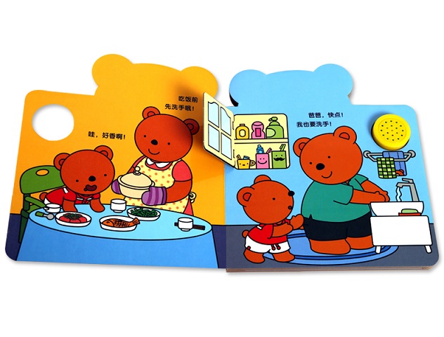 这是一套针对1-2岁幼儿培养良好行为习惯的游戏书,包括洗手、开门两个主题。以可爱的豆豆熊为主角,用简单的语言还原“开门”“洗手”的场景,设置发声器,按下就会发出门铃、洗手的声音,真实声音效果将场景与宝宝的实际生活相融合,让宝宝有种身临其境的感受,帮助宝宝养成健康良好的生活习惯。加厚纸板,特殊圆角设计,保证宝宝小手的安全性;书内设有翻翻页,增加趣味性。