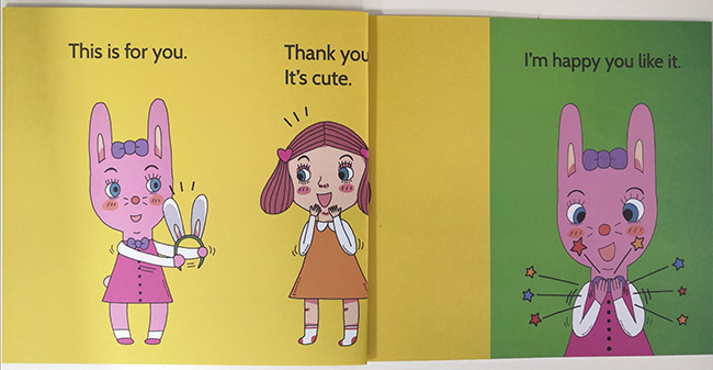 小动物们在一起很开心,他们在用不同的动作表达自己快乐的心情。你看,小兔子拍起了手,大象跺着脚,河马转圈圈,鳄鱼大喊“哟吼!”。
