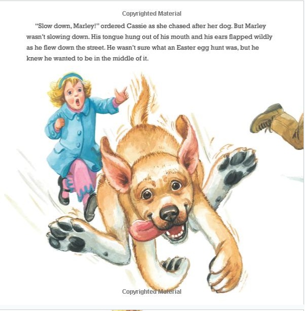 The day of the annual town Easter Egg Hunt has arrived, and Marley and his family are ready to find the biggest, most eggstravagant egg! Marley is great at spotting the eggs in trees and behind plants, but he just can't seem to get the eggs to Cassie or Baby Louie before someone else snatches them up. So, in true Marley fashion, Marley decides to forge his own path . . . right through the doors of the town shops. Stopping into the grocery, the bakery, and the party store, Marley creates calamity wherever his paws touch. But will his wild egg chase end up with Marley finding the big, glorious egg before the hunt is over?