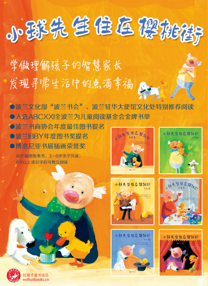 《小球先生住在樱桃街》来自波兰,是一位慈祥又可爱的作家爷爷和一位优雅又活泼的画家阿姨共同创作的经典童书,他们用亲切温暖的语言、绚烂明媚的笔触,描绘了作为“家长”的小球先生与性格迥异的“孩子”小鸭难难、小狗点点和小苍蝇嗡嗡之间平淡又不失欢快的日常生活。每一册由若干个小故事组成,有对亲情、友情的感知与体悟,有敏感细微的情绪体验,有生活点滴中蕴含的朴素道理……