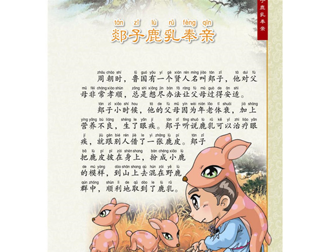 《中小学课外必读经典》系列精选了不同时期、不同国度但同样意义深远、广为流传的故事,呈现在孩子们面前,揭示出人生哲理、生活智慧,更有美好的时光、神奇的想象世界,使我们的孩子在阅读、聆听的过程中学习做人做事的道理、生活的智慧和技巧,体味生活中平凡的幸福,体验不可思议的传奇神话。该丛书让孩子在故事中学习知识,在阅读中感悟道理。 《写给孩子的中外孝顺美德故事》分册:孝敬父母是中华民族的传统美德,本书列举了不同历史时期的人物孝敬父母的事例。比如:孟宗哭竹、王闰浴火救父、郯子鹿乳奉亲等等,这些生动感人的故事对孩子理解父母、关爱父母,起到重要的指导意义,帮助孩子学会感恩。