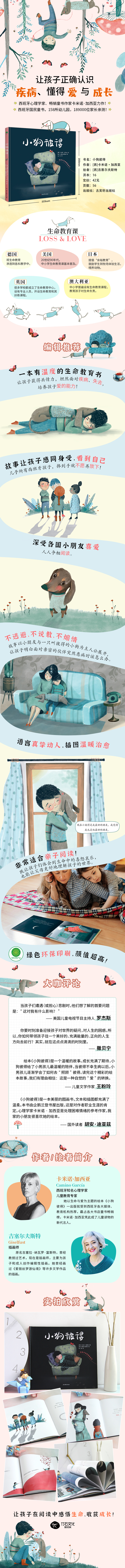 ★不逃避、不说教、不煽情。故事以小朋友与一只叫彼得的小狗为主人公展开,让孩子明白面对亲密的伙伴突然患病时该怎么办。