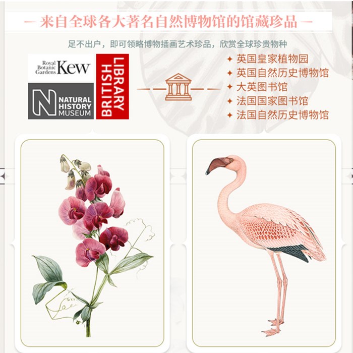 ★每一幅插画都是全球各大著名自然博物馆的馆藏珍品:英国皇家植物园,英国自然历史博物馆,大英图书馆,法国国家图书馆,法国自然历史博物馆,等。