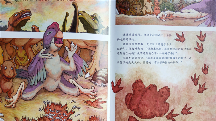 这是一本讲述恐龙足迹知识的绘本。恐龙族群了发生了神秘案件——怪脚龙妈妈的蛋被踩碎了,留下一个巨大的神秘脚印。刚满18岁的恐龙侦探爆爆通过对一系列恐龙的足迹的侦查判断,发现踩碎恐龙蛋的凶手竟然就是年迈的山东龙奶奶。恐龙侦探如何面对这个残酷的真相呢?山东龙奶奶真的是凶手吗。